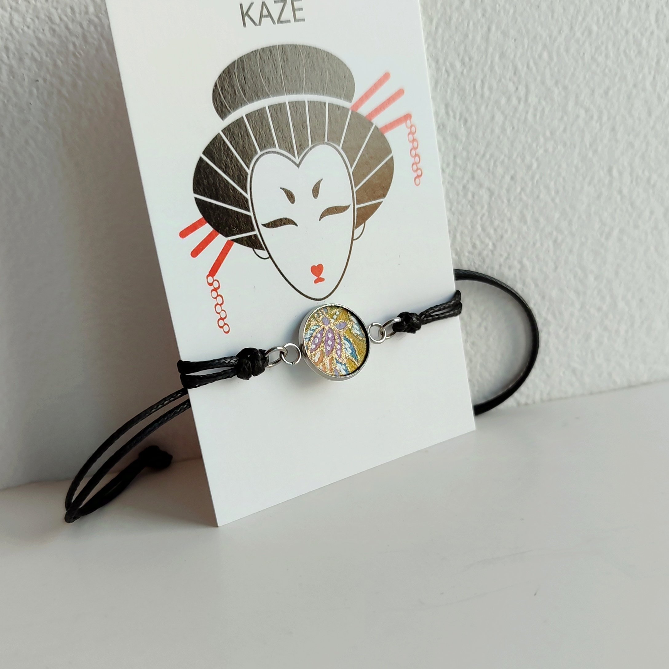 Le bracelet, réglable en longueur, est en corde de nylon ciré.
