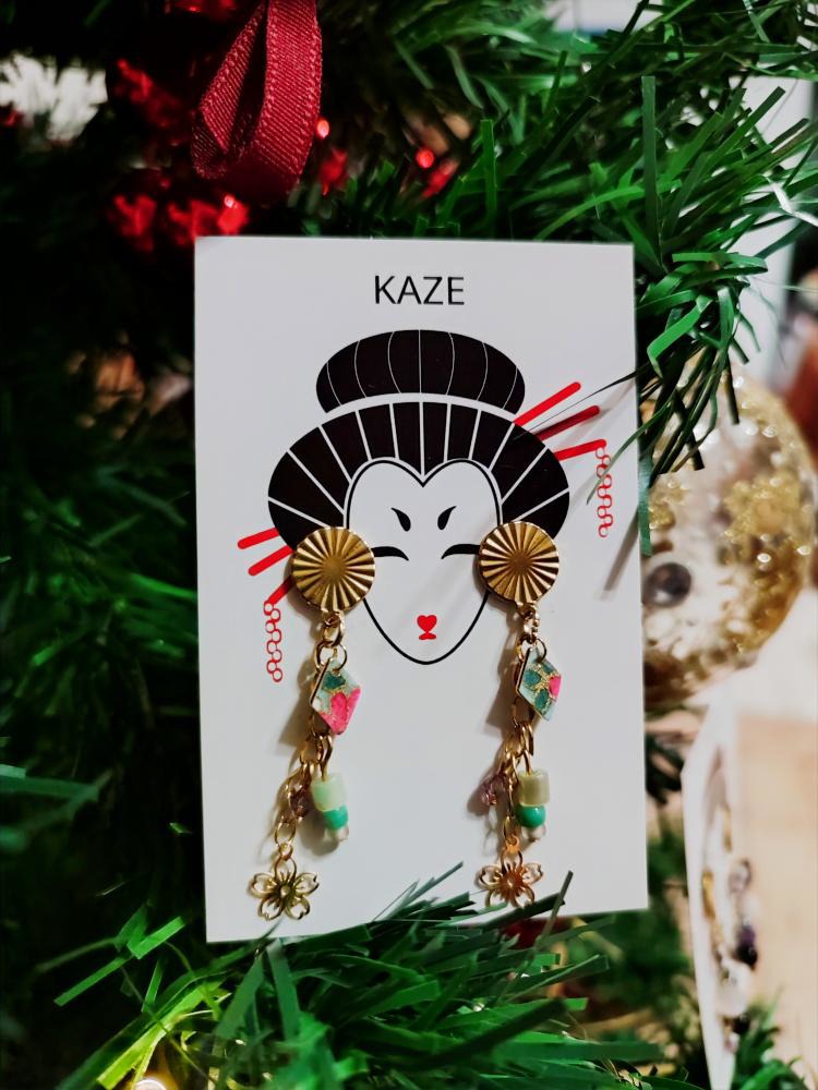 Boucles d’oreilles uniques créées à partir de chutes de papier washi, de perles et breloques vintage et/ou de récupération.