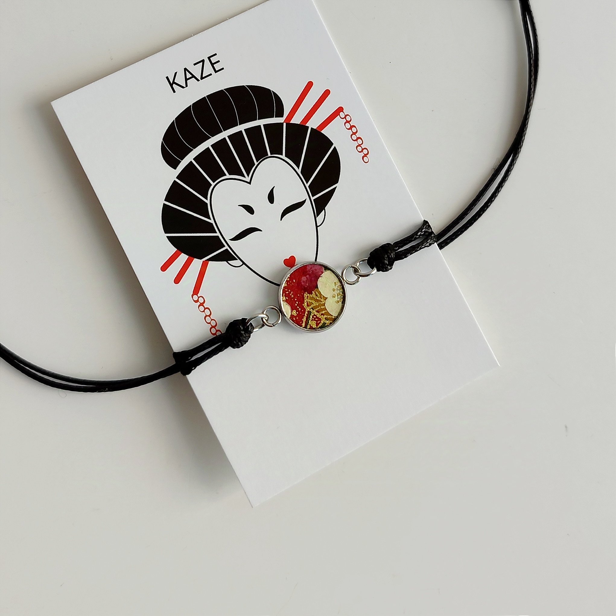 Bracelet acier en papier washi rouge et vert